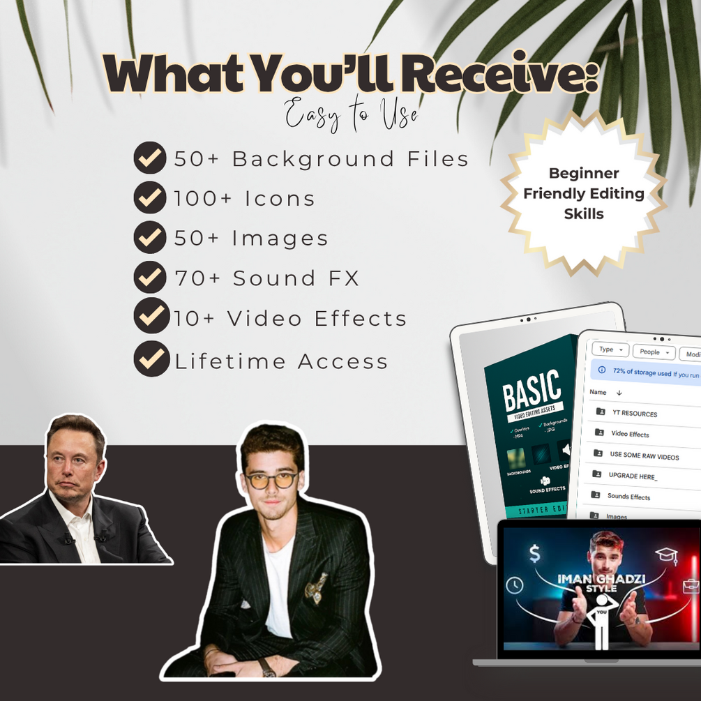 🔥50+ Background Files 🔥100+ Icons 🔥50+ Images 🔥70+ Sound FX 🔥10+ Video Effects 🔥Lifetime Access